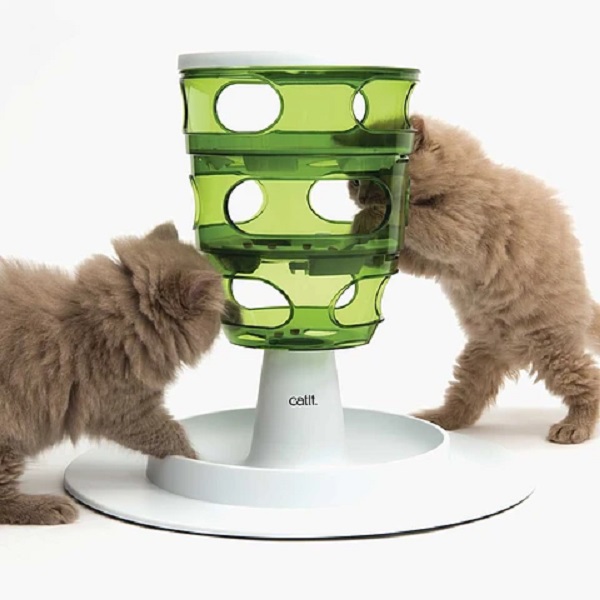 - Un juguete inteligente que estimula a los gatos a trabajar para obtener su comida