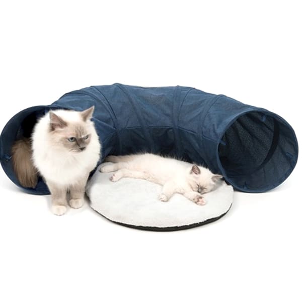 Vesper Tunnel Mat de Catit es un túnel para gatos abierto en ambos extremos, con una abertura central con una pelota de peluche colgante con el que tu gato tendrá horas de diversión mientras juega y explora. Fabricado en tela de alta calidad y resistente a los enganches que resistirá incluso a los gatitos más traviesos. El túnel viene con un cojín redondo ideal para que su gato descanse.